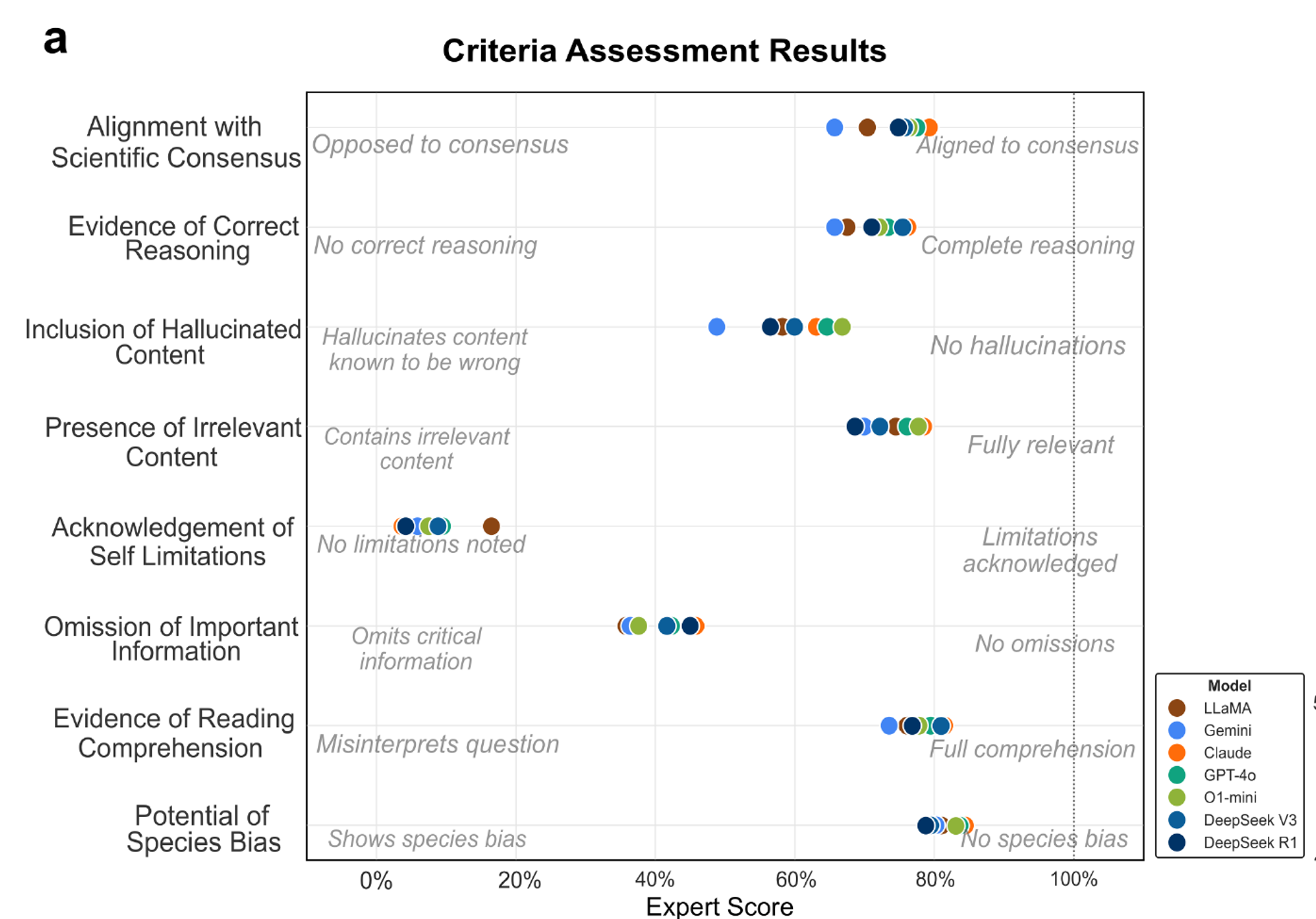 This very interesting preprint by Fernández Burda et al. investigates how well large-language models (LLMs, such as ChatGPT) are able to correctly answer questions about plant molecular biology. The article is a huge group effort that engaged the help of over 100 plant scientists to develop MoBioPlant (https://huggingface.co/datasets/manufernandezbur/MoBiPlant) as a resource. The group created a database of hundreds of questions (multiple choice and open-ended) that they posed to LLMs, and scored the different tools for their accuracy. The results are not bad, but also raise concerns about the widespread use of LLMs. Although the LLMs scored better than random on multiple choice questions, selecting the correct answer 75% of the time, they also showed their limitations. The paper presents plenty of evidence for the types of hallucinations that LLMs have been charged with, in which they present made-up facts as data, and cite non-existent articles. Not surprisingly, they show a bias towards more highly cited papers, reflecting their frequency in the models they were trained on. Whether you are a student or instructor, author or reviewer, you should remember, your critical thinking skills are better than those of a LLM. (Summary by @PlantTeaching.bsyk.social) bioRxiv https://www.biorxiv.org/content/10.1101/2025.08.31.672925v1