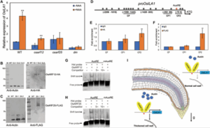 Root angle is the direction and spatial orientation of roots in relation to gravity, which aids nutrient uptake and anchorage. Root angle is shaped by gravity perception, asymmetric auxin distribution, and differential growth across root zones. While auxin response factors (ARFs) are known to regulate this process, their downstream targets remain unclear. Song et al. identified OsILA1, which encodes a Raf-like mitogen-activated protein kinase, as specifically expressed in the rice root epidermis, suggesting a role in root development. The authors tested this hypothesis with gravistimulation assays. In wild-type (WT) plants, gravistimulation triggers cell wall thickening on the lower side of the root, putting a brake on elongation and causing the root to bend downwards. By contrast, cell wall thickening was absent in the lower side of osila1 mutant roots, causing delayed response to gravity. Similarly, auxin treatments showed that high NAA concentrations inhibited root elongation and promoted cell wall thickening in WT roots, a response that was absent in osila1 mutants, suggesting a direct connection between auxin and wall remodeling. Since auxin response elements (AuxREs) are found in the OsILA1 promoter, the authors tested their function using a complementation assay and showed that the OsILA1 promoter requires the AuxRE to restore gravitropic responses in osila1 mutants. Because AuxREs are regulated by ARFs, the authors mutated all nine activator OsARFs and found that osarf12 and osarf25 mutants had shallower roots and reduced OsILA1 expression. Overall, this study provides the mechanism by which auxin regulates cell growth during root gravitropic response. (Summary by Irene I. Ikiriko @ireneikiriko) Science Advances 10.1126/sciadv.ady23.