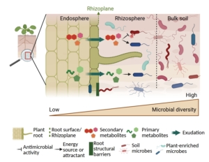 The “Green Revolution” transformed global food production through the use of fertilizer, but at the expense of rising costs and reliance on non-renewable inputs, prompting modern agriculture to shift toward alternative strategies such as the symbiotic relationships between plants and soil microorganisms. Beyond supporting nutrient acquisition, the soil microbiome enhances plant resilience to biotic and abiotic stresses, acting as a dynamic “second genome” that shapes plant health. In a recent review, Uribe-Acosta and colleagues spotlight the pivotal role of root metabolites in mediating plant–microbiome interactions. Root exudates encompass primary metabolites such as sugars, amino acids, and organic acids, which serve as carbon and nutrient sources driving microbial assembly. They also include a diverse array of secondary metabolites, such as glucosinolates, flavonoids, alkaloids, benzoxazinoids, terpenes, and more, that function in signaling and defense. Many of these compounds are lineage-specific, including glucosinolates in Brassicaceae, steroidal glycoalkaloids in Solanaceae, and isoflavones in legumes. Mutants with altered root development produce distinct exudate profiles, ultimately reshaping their microbial communities. These observations collectively indicate that genetic variation or the genotype of the plant ultimately constrains the metabolic capacity. Certain metabolites, such as phenylpropanoid-derived coumarins and carotenoid-derived strigolactones, further demonstrate dual roles in nutrient uptake and microbiome assembly, highlighting their diverse function. With plants estimated to produce 0.1 to 1 million metabolites, current knowledge represents only the tip of the iceberg. Looking forward, deeper insights into plant–microbiome–metabolite networks will be critical for designing sustainable, microbiome-informed strategies to improve crop nutrition and resilience to environmental changes. (Summary by Ching Chan @ntnuchanlab) Plant Physiology 10.1093/plphys/kiaf349